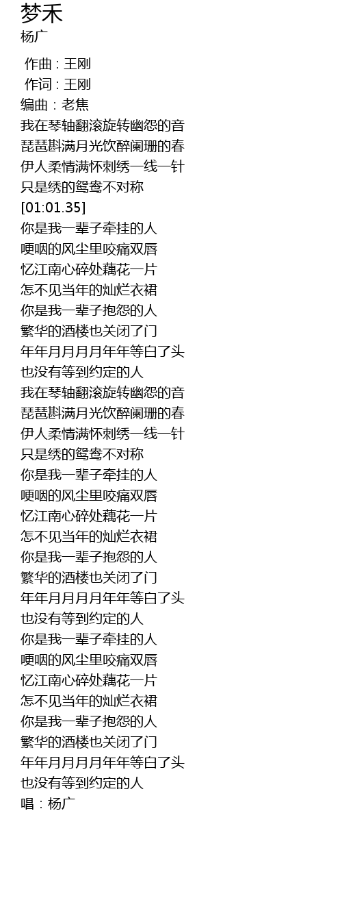 | [00:01.000] | 作词 : 王刚 |