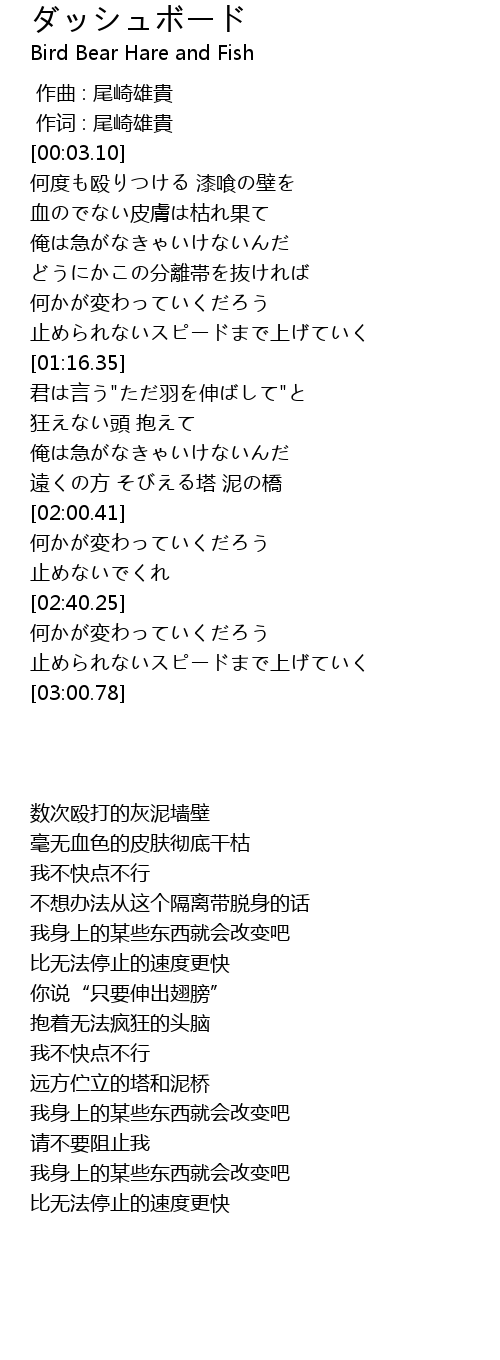 | [00:01.000] | 作词 : 尾崎雄貴 |