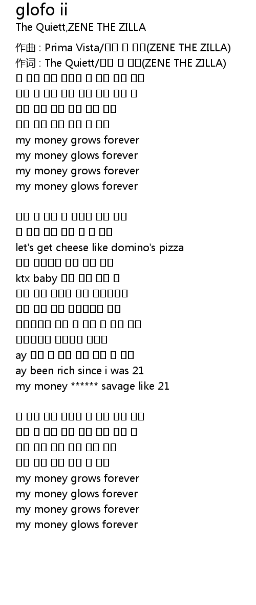 | 作词 : The Quiett/제네 더 질라(ZENE THE ZILLA) | |