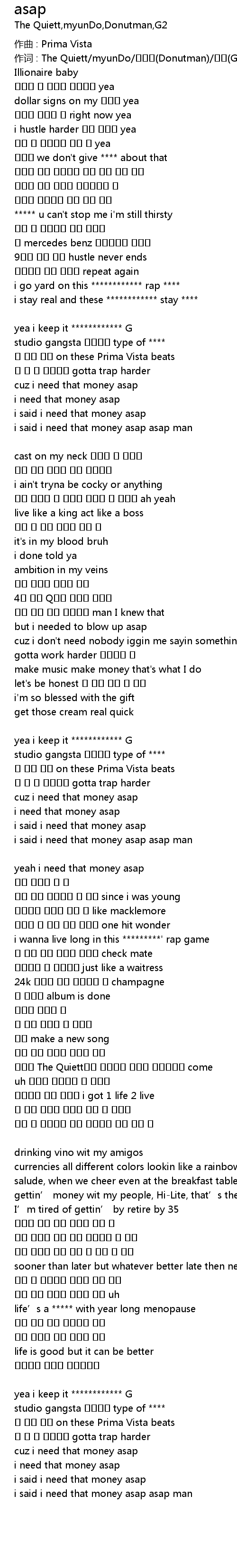 | 作词 : The Quiett/myunDo/도넛맨(Donutman)/지투(G2) | |