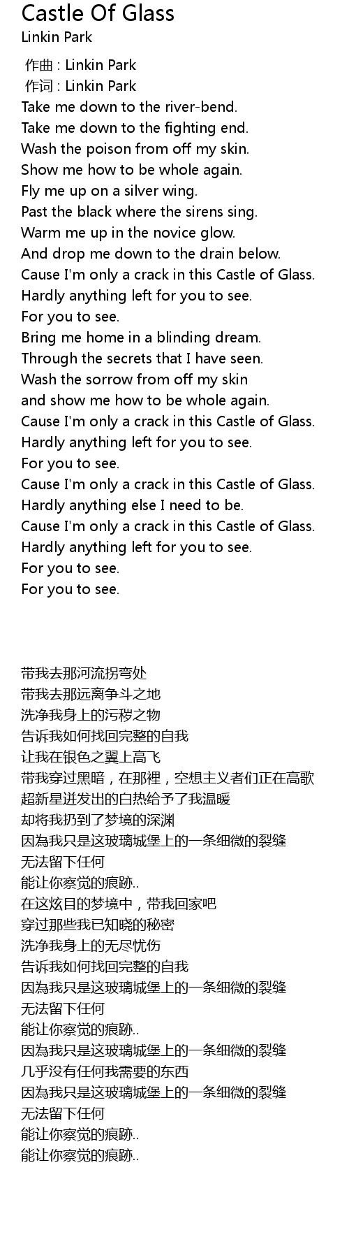 | [02:48.259] | Cause I'm only a crack in this Castle of Glass. |