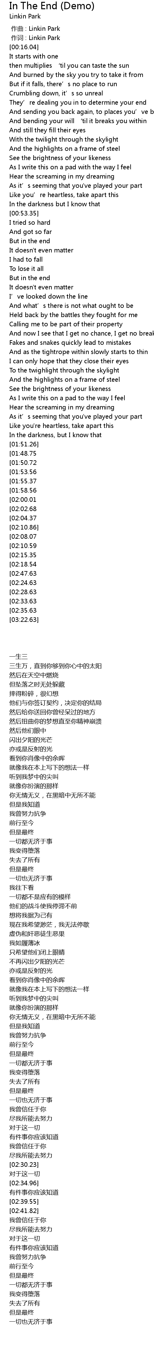 | [00:01.00] | 作词 : Linkin Park |