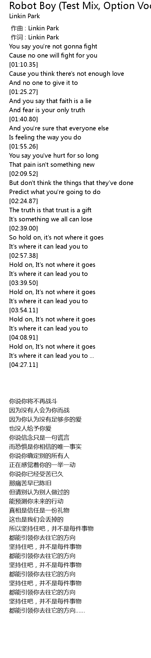 | [00:01.00] | 作词 : Linkin Park |
