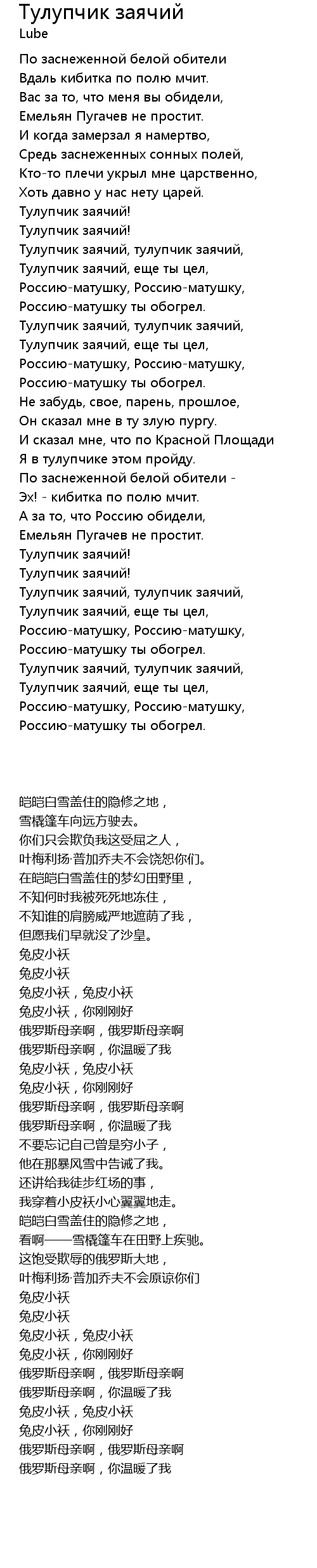Тулупчик заячий, тулупчик заячий, |