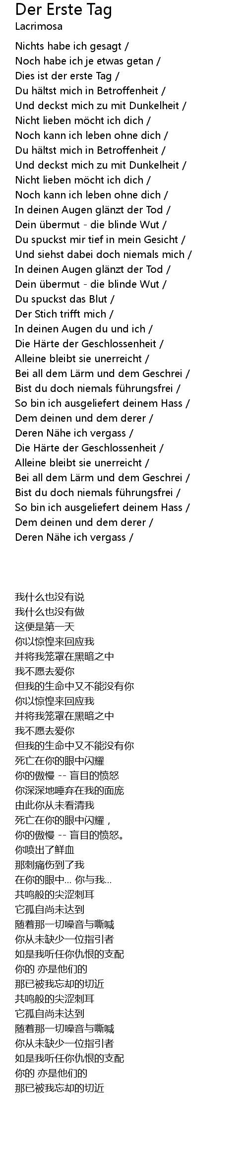 | [06:15.250] | So bin ich ausgeliefert deinem Hass / |