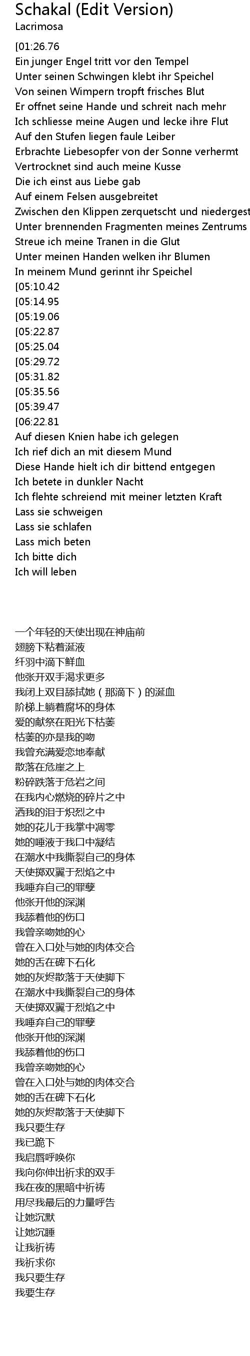 | [05:44.53][06:22.81] | Ich will nur leben |