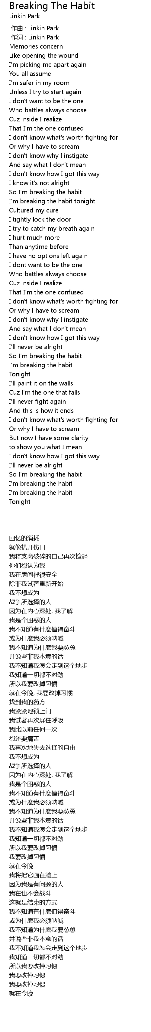 | [00:00.00] | 作曲 : Linkin Park |