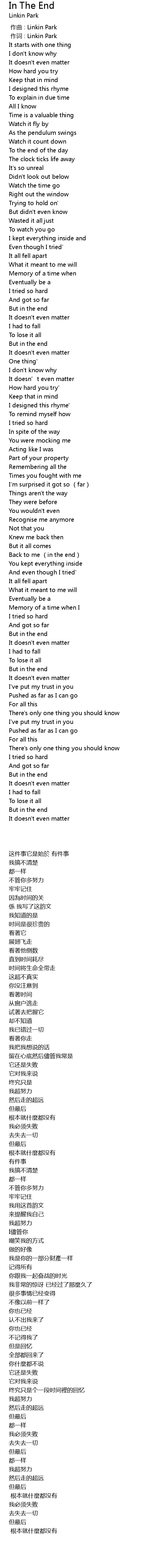 | [00:01.00] | 作词 : Linkin Park |