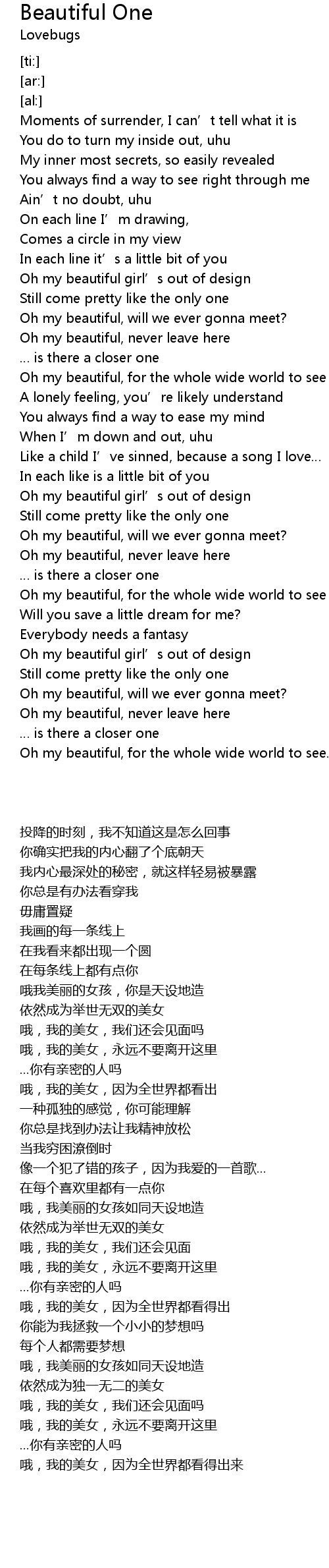 | [02:45.65] | Oh my beautiful girl’s out of design |
