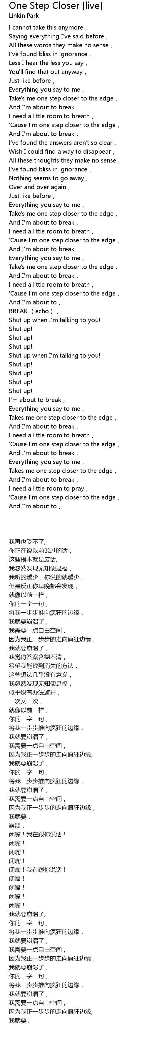 | [02:37.52] | 'Cause I'm one step closer to the edge, |
