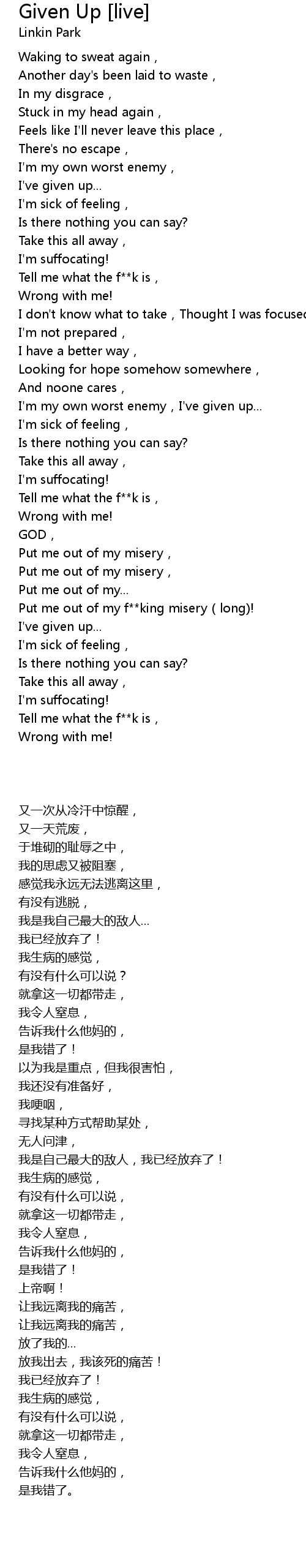 | [01:27.85] | I' m my own worst enemy, I' ve given up... |