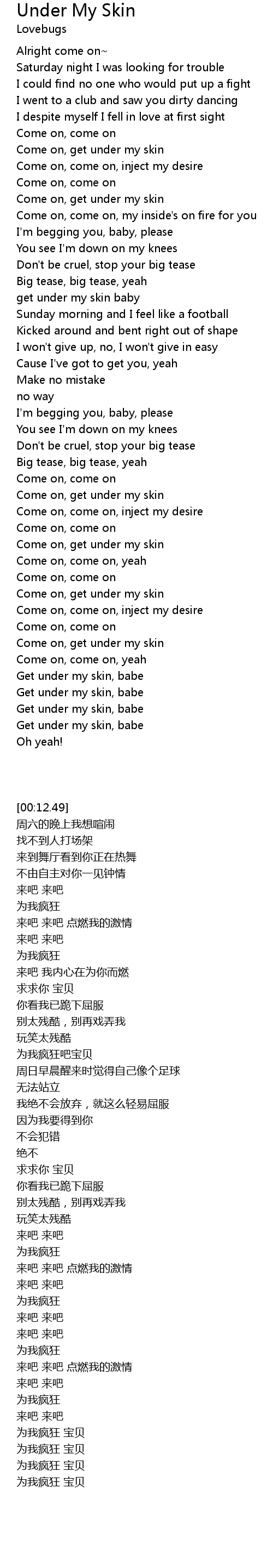 | [00:55.50] | Come on, come on, my inside's on fire for you |