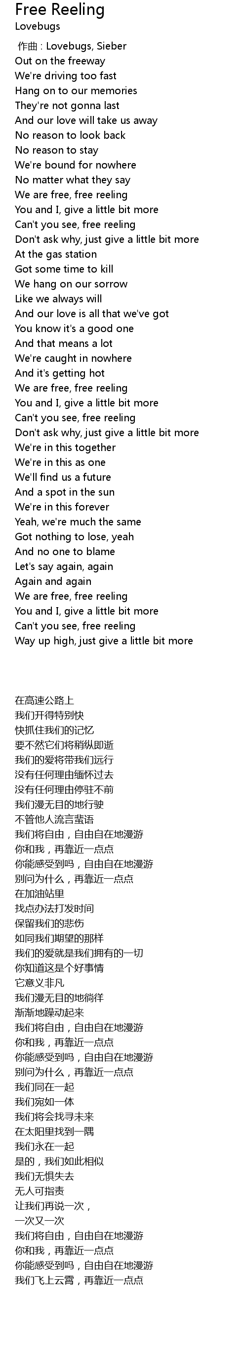 | [00:46.00] | We are free, free reeling |