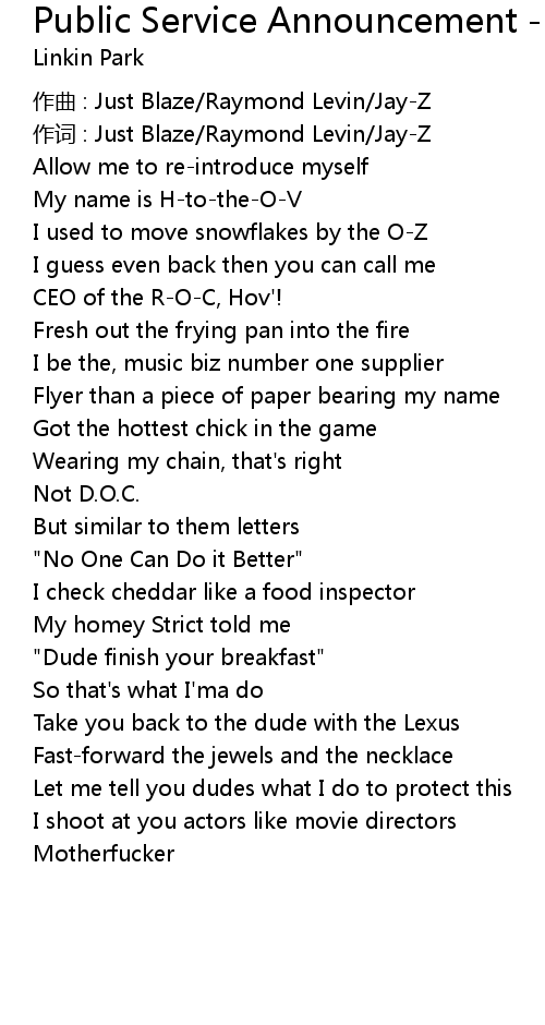 | 作词 : Just Blaze/Raymond Levin/Jay-Z | |