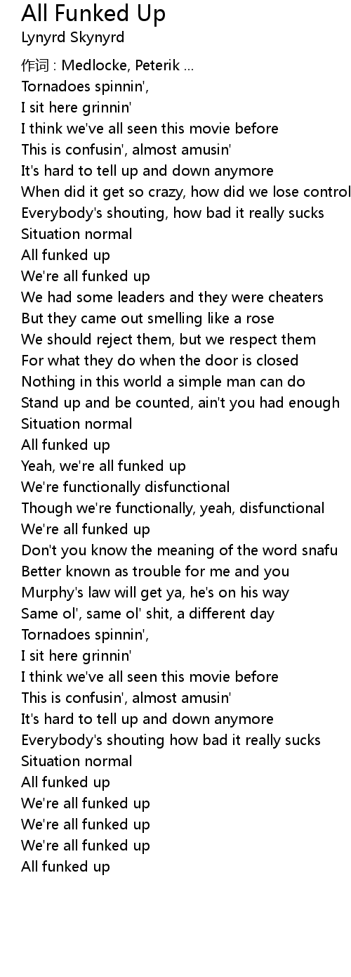 | Yeah, we' re all funked up | |
