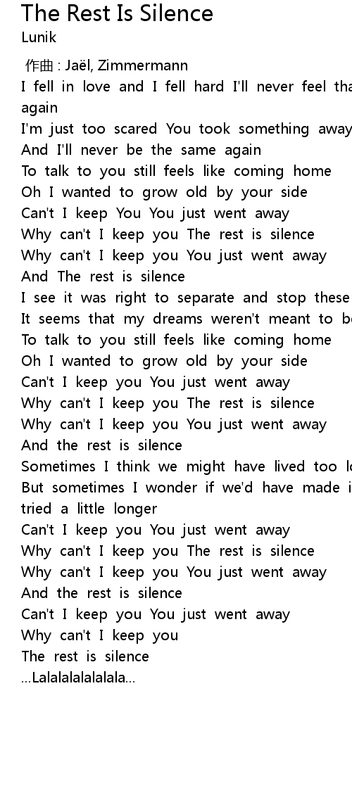 | [00:52.238] | Why can' t I keep you The rest is silence |