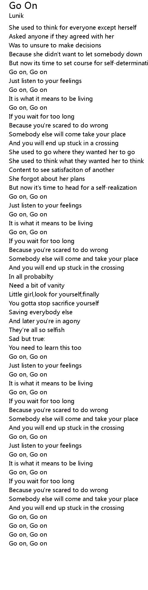 | [00:34.07] | Go on, Go on |
