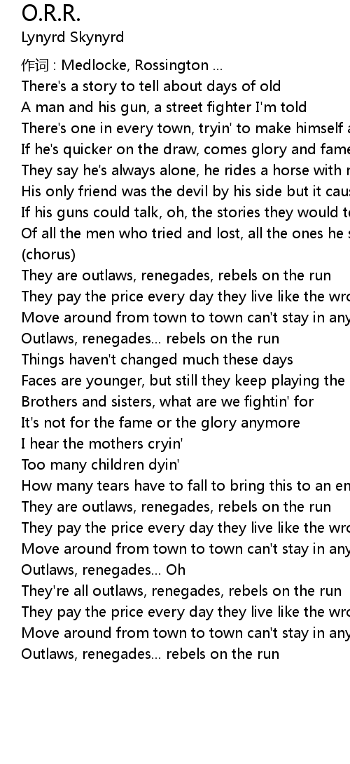 | 作词 : Medlocke, Rossington ... | |