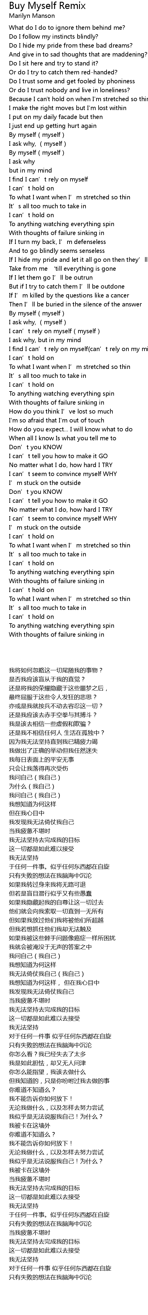 | [02:01.81] | By myself myself |
