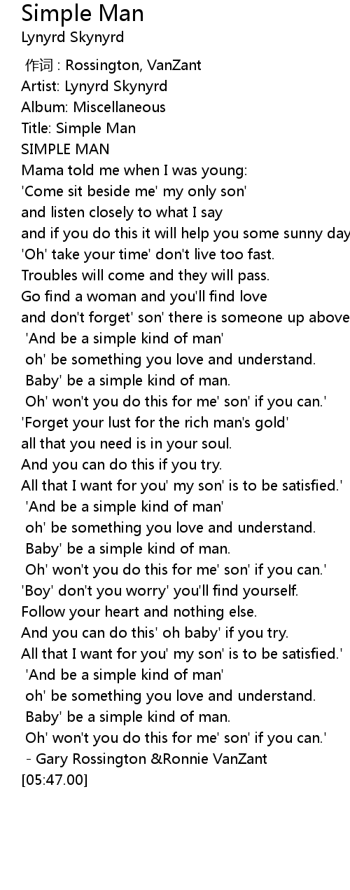 | [00:17.44] | Title: Simple Man |