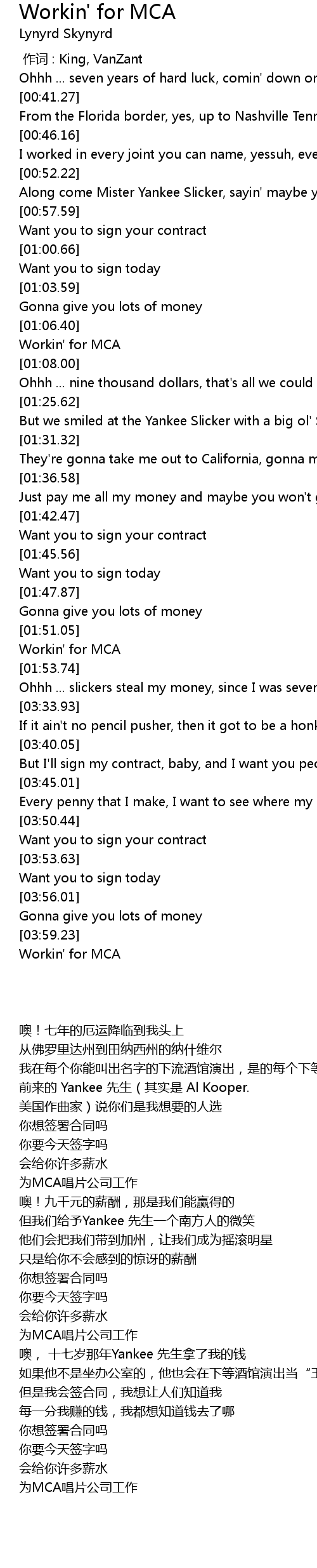 | [04:00.54] | Workin' for MCA |