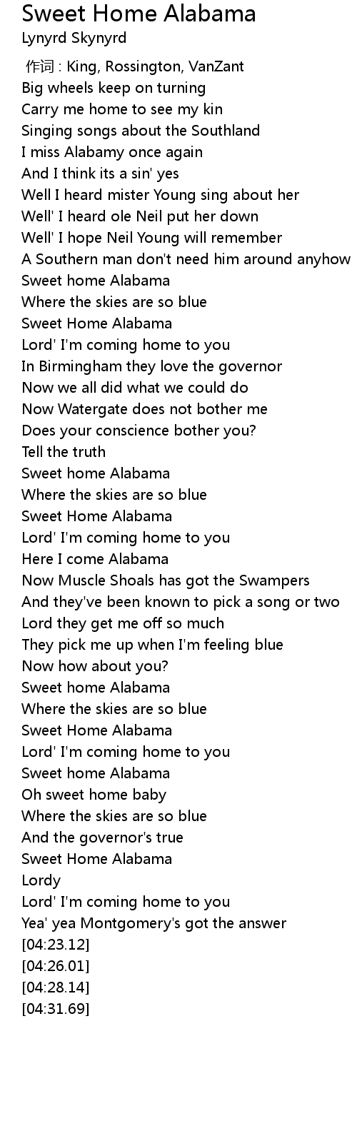 | [00:00.00] | 作词 : King, Rossington, VanZant |