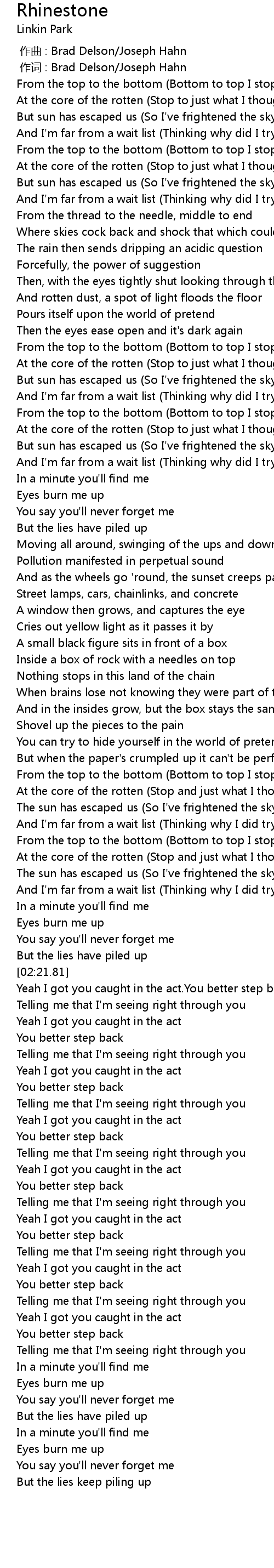 | [00:00.00] | 作曲 : Brad Delson/Joseph Hahn |