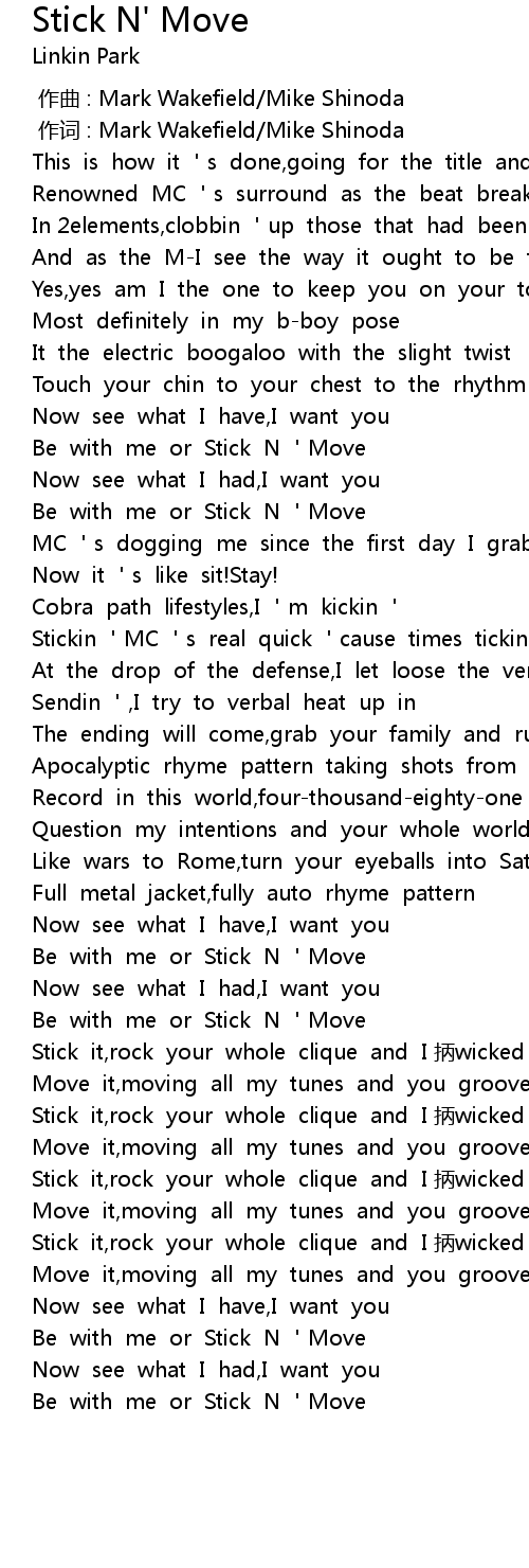 | [01:38.254] | Be with me or Stick N Move |