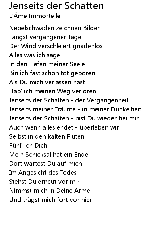 | Jenseits der Schatten bist Du wieder bei mir | |