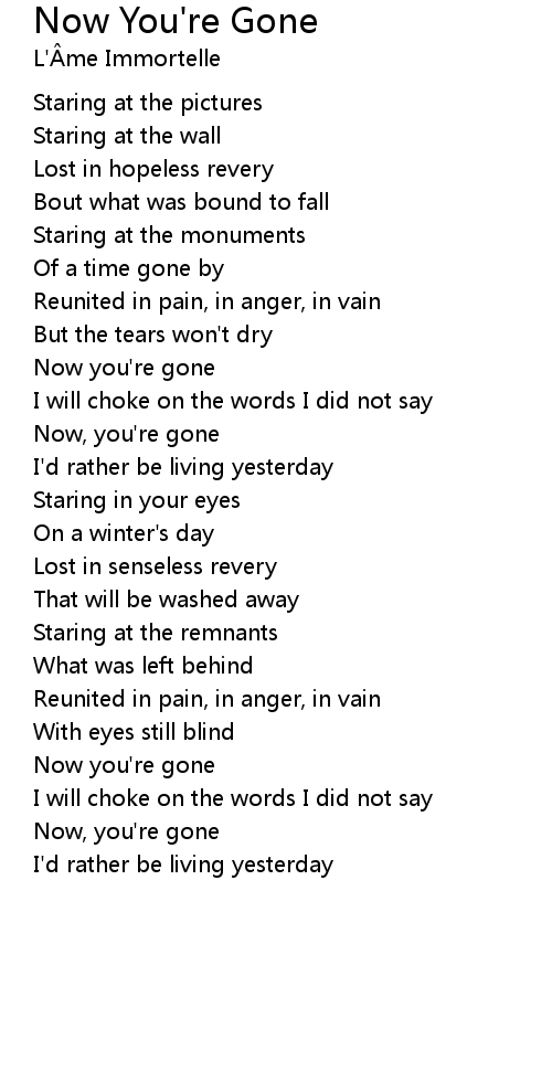 Now you're gone |