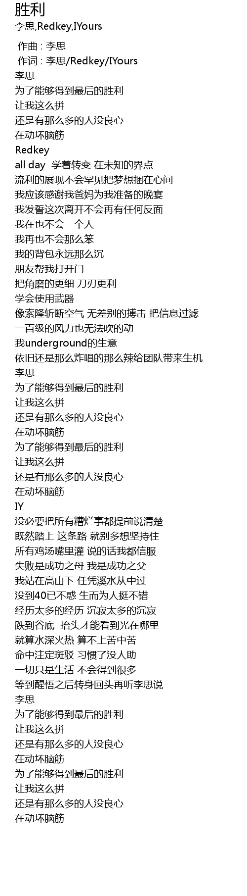 | [00:01.000] | 作词 : 李思/Redkey/IYours |