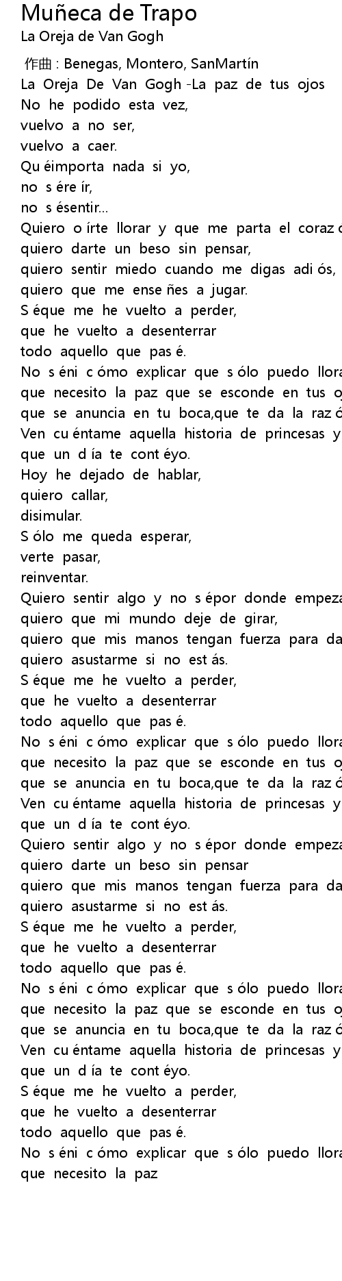 | [00:01.31] | La Oreja De Van Gogh La paz de tus ojos |