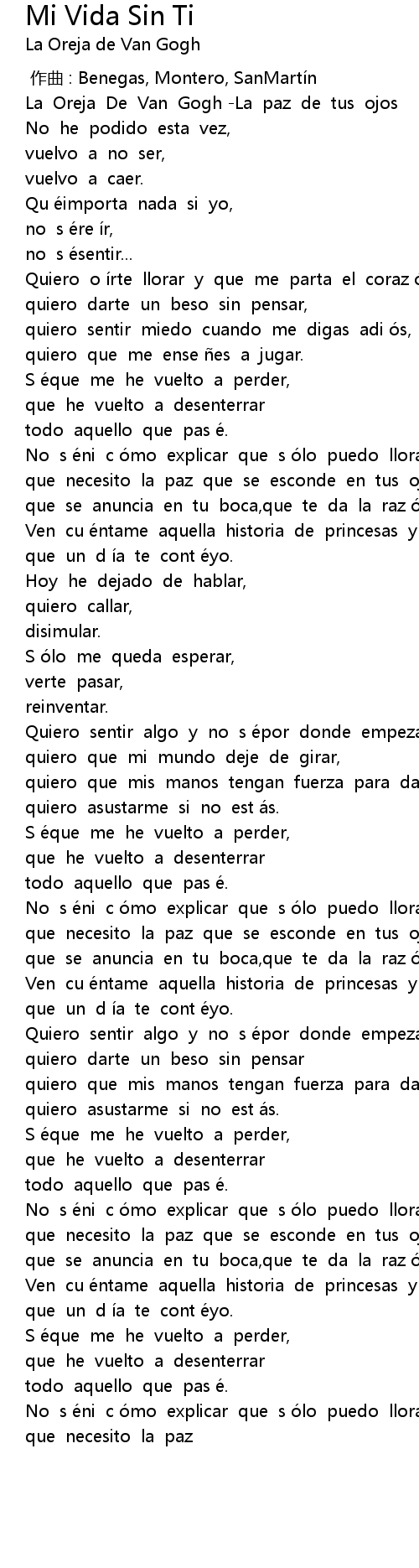 | [00:01.31] | La Oreja De Van Gogh La paz de tus ojos |