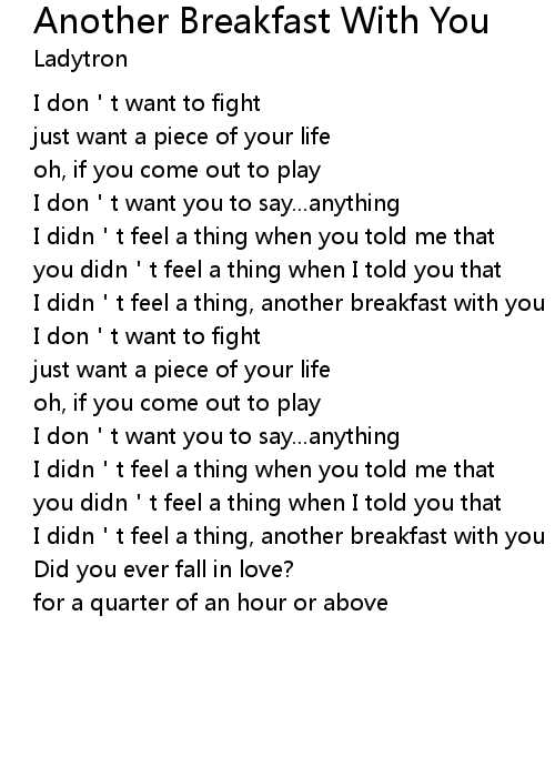 | [01:46.32] | I didn t feel a thing, another breakfast with you |