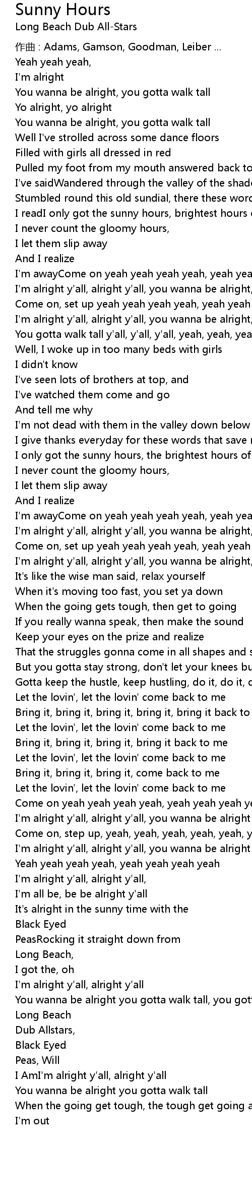 | I'm alright y'all, alright y'all, you wanna be alright, you gotta walk tall | |