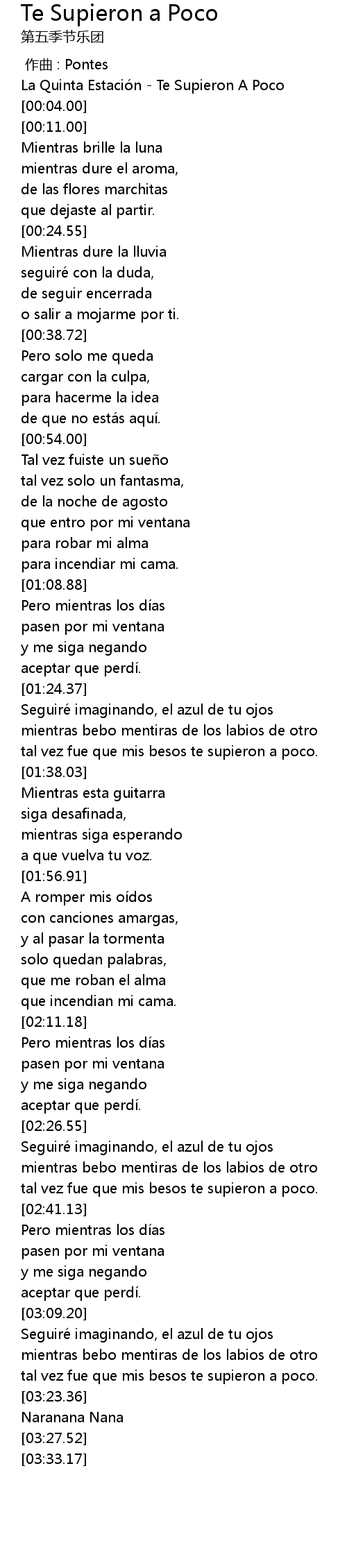 | [00:01.00] | La Quinta Estació n Te Supieron A Poco |