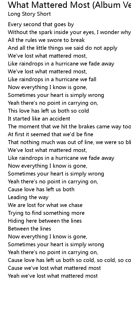 | Cause we ve lost what mattered most | |