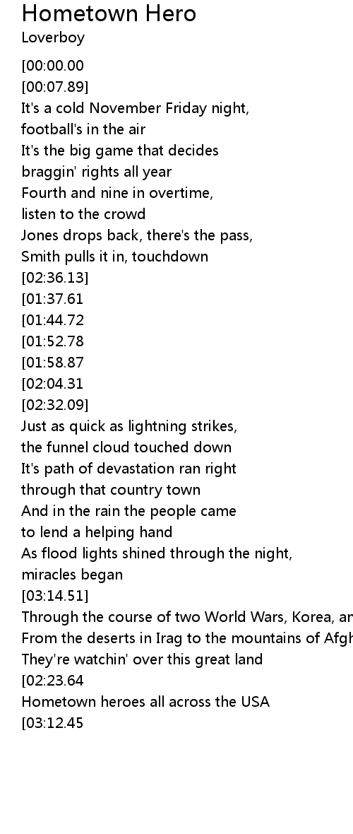 | [02:38.32][01:37.61][00:37.41] | Hometown heroes, you know who they are |
