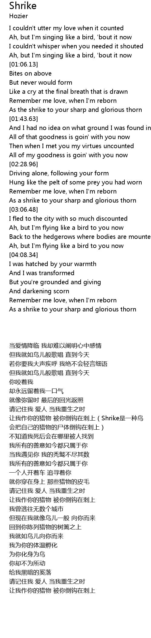 As the shrike to your sharp and glorious thorn |
