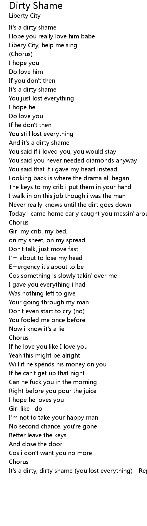 It's a dirty, dirty shame (you lost everything) - Repeat until fade |