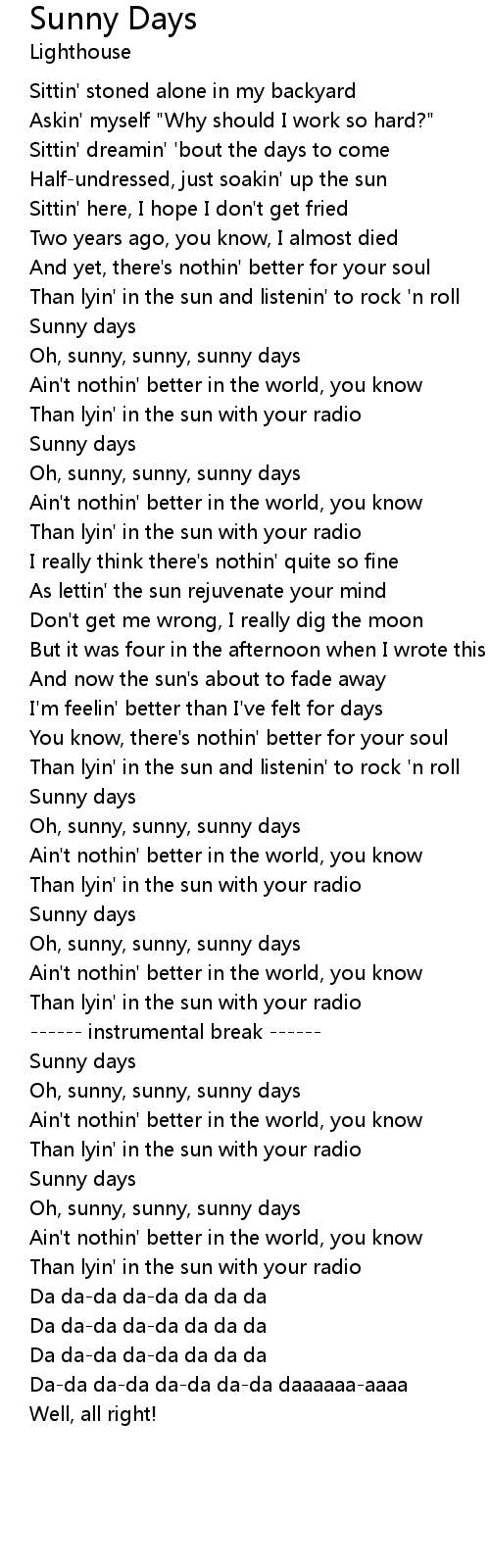Oh, sunny, sunny, sunny days |