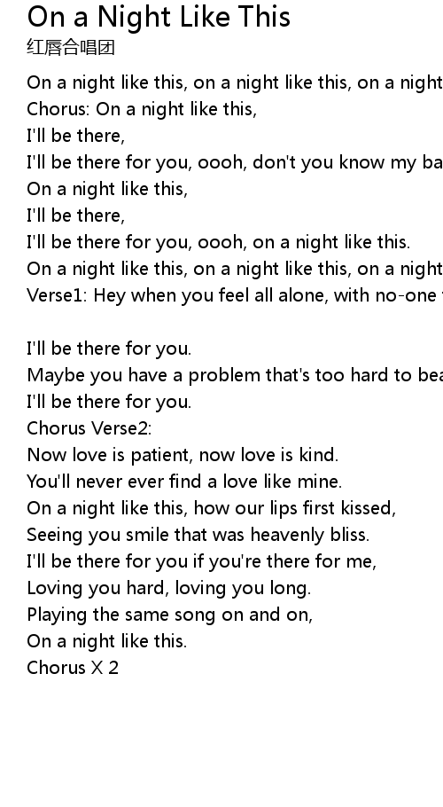 | Chorus: On a night like this, | |