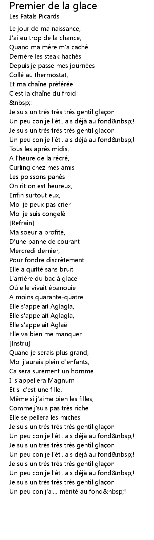| Song | Premier de la glace |