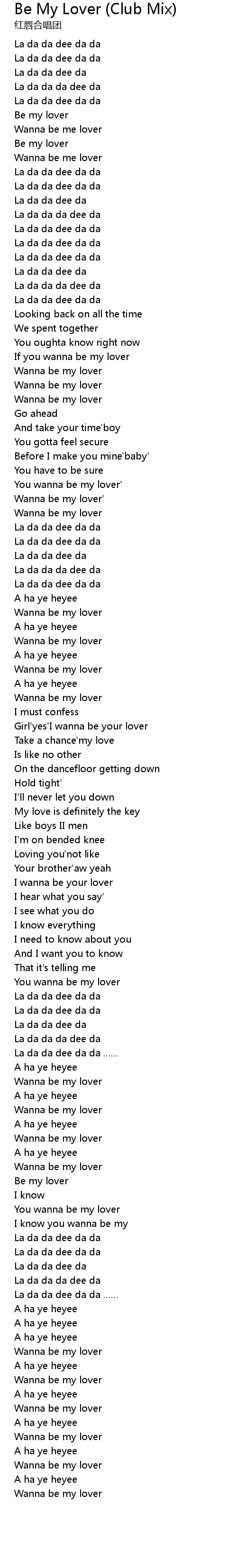 | [02:47.986] | Girl' yes' I wanna be your lover |