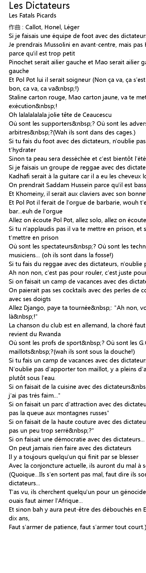 | Allez on écoute Pol Pot, allez solo, allez on écoute | |