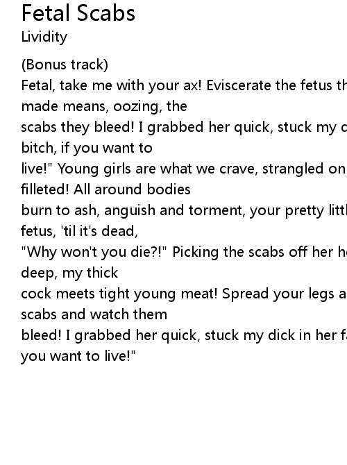Fetal, take me with your ax! Eviscerate the fetus that's left! Abortion by man made means, oozing, the |