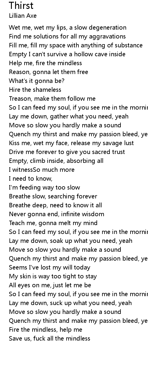Kiss me, wet my face, release my savage lust |