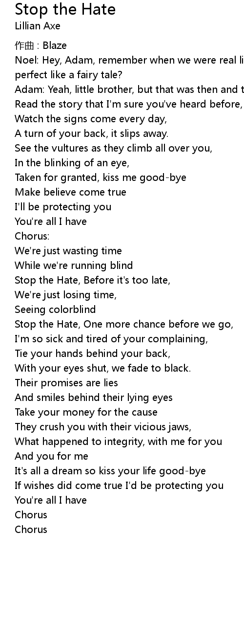 | Stop the Hate, Before it's too late, | |