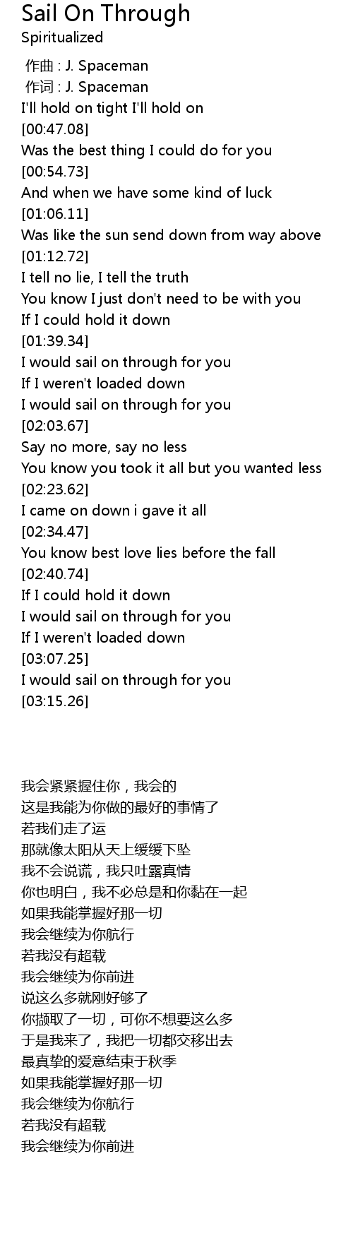 | [00:43.58] | I'll hold on tight I'll hold on |