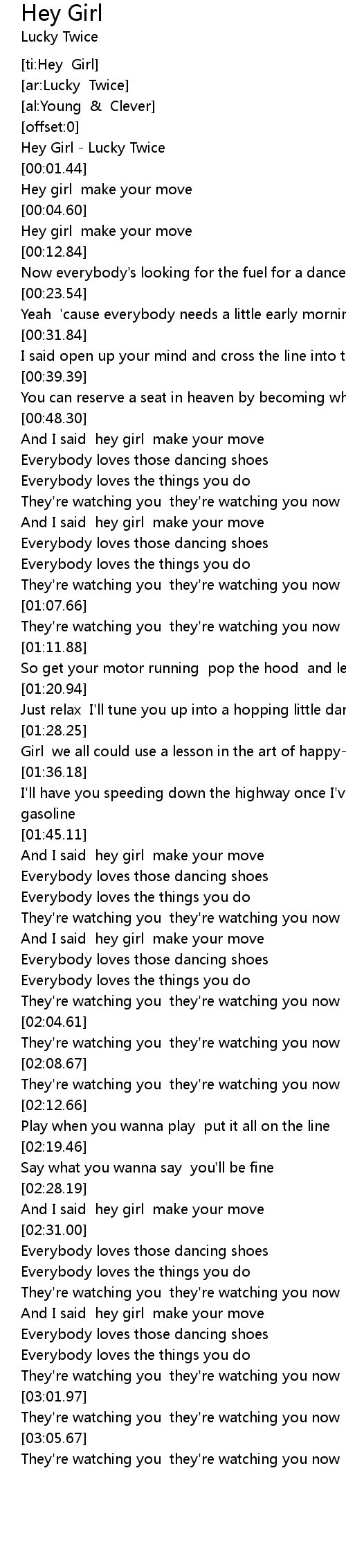 [ti:Hey Girl] |